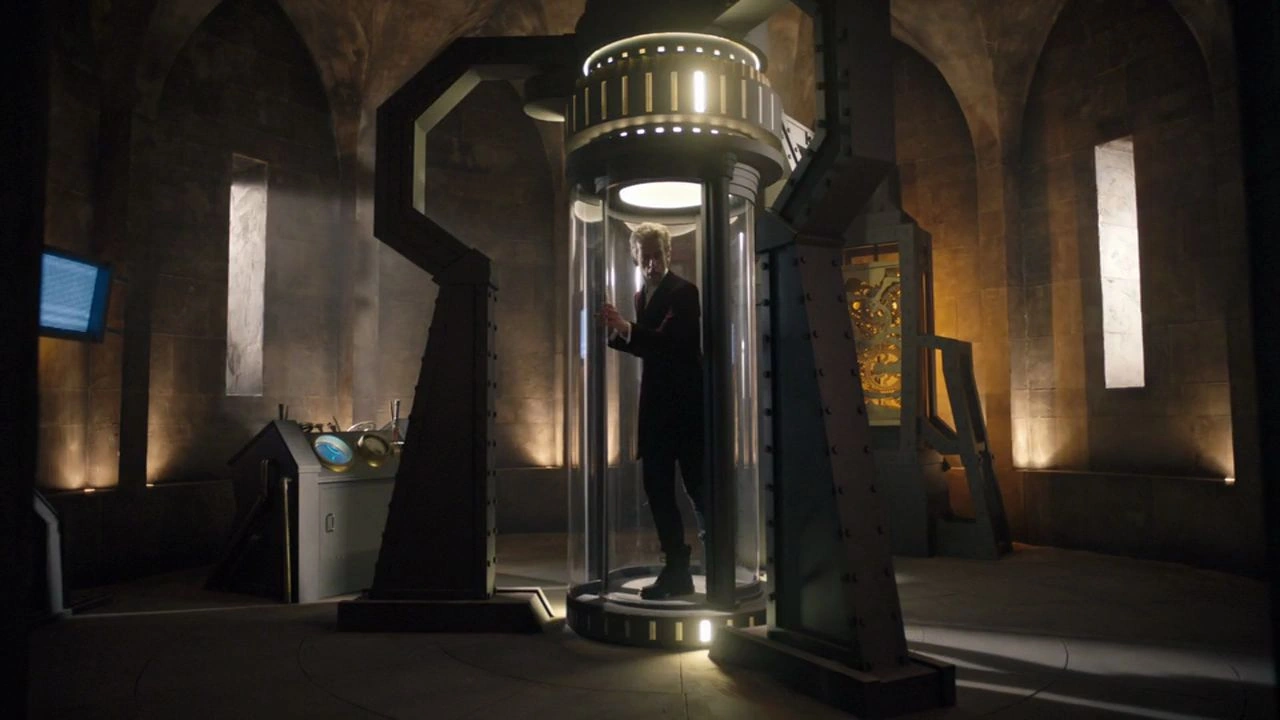 El Doctor avanza por la sala del teletransporte y se acerca al panel de control. Como la mayoría de las salas se resetean en su condición original, lo lógico es asumir que la sala del teletransporte también hace lo mismo. Como tal, dentro del disco duro de la máquina de teletransporte hay una copia del Doctor tal y como era cuando llegó al castillo siete mil años atrás. Lo único que tiene que hacer es añadir energía a la máquina para activarla, siendo él mismo la única fuente de energía que tiene. Tiene que quemar la antigua versión de si mismo para que se materialice la nueva.