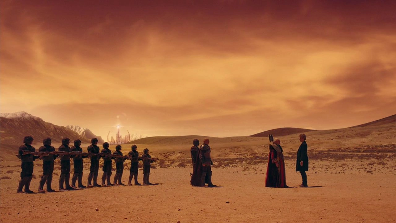Mientras tanto, el Doctor trata de disfrutar de un tazón de sopa siendo observado por una pequeña multitud de Gallifreyans. Gastron aparece en una nave militar y pide al Doctor que suelte sus armas. En vez de irse hacia Gastron, el Doctor camina hasta estar frente a la nave y arrastra una bota por la tierra, dibujando una línea. Gastron informa a Rassilon, que posteriormente lleva a cabo varios intentos para obtener la atención del Doctor — le envía soldados respetables, el Alto Consejo e incluso el Consejo de Guerra. Finalmente, el propio Rassilon acude a la zona con su guardia personal; el Doctor le responde simplemente diciendo "Sal de mi planeta".