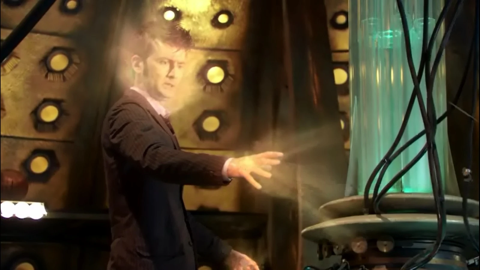 DocteurDonna, électrocuté par Davros, au Creuset (DW: Journey's End)