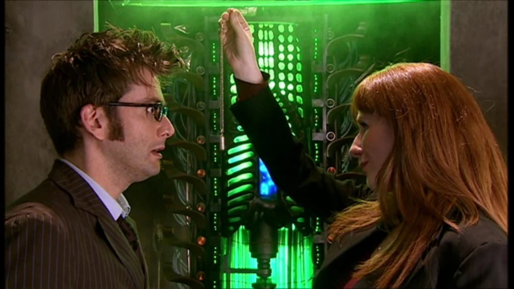 Mais avant que Davros ne puisse activer sa bombe de réalité, le TARDIS reparut et une copie du Docteur, créé par Donna en touchant la main coupée, en sortit et tenta sans succès d'assassiner Davros. Celui-ci électrocuta également Donna, mais cela activa une partie Seigneur du Temps qui était allée en elle lorsqu'elle avait touché la main, la transformant en "DocteurDonna". Le DocteurDonna désactiva la bombe et les planètes furent renvoyées à leur place ; le nouveau Docteur détruisit les Daleks, à la grande horreur du Docteur devant un nouveau génocide. Le Docteur voulut sauver Davros et Caan, mais Davros refusa et baptisa le Docteur "le Destructeur de Mondes", tandis que Caan prédit que l'un de ses compagnons devait périr. Le groupe du Docteur se servit du TARDIS pour ramener la Terre à sa place pendant que le Creuset explosait.