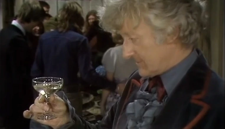 Le Docteur, déçu, prend un verre de champagne avant de s'en aller discrètement (DW: The Green Death)